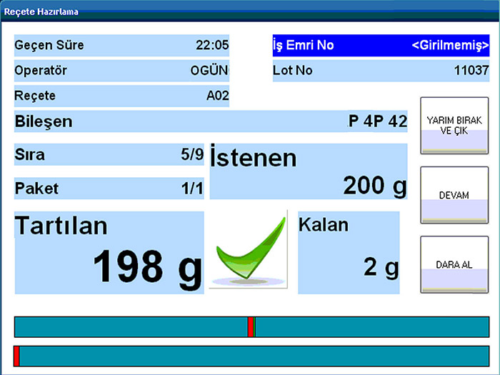 - Tartım tamamlandığında, barkod etiket üretilir ve ekrana lot no yazılır.