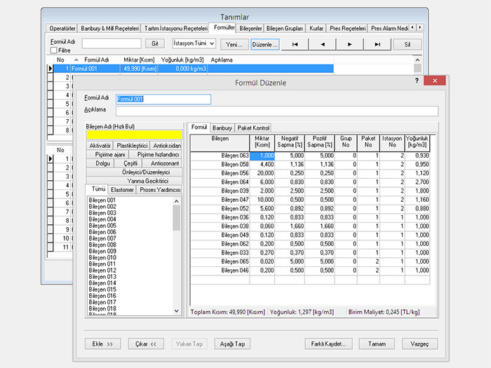 - Hammadde lot numaraları, tartım lot numaraları ile şelenebilir (opsiyonel).